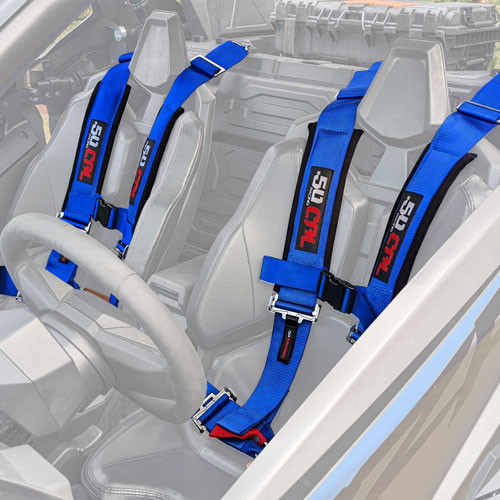 Can-am factory roll cages do not have any provision for 4 point safety harnesses. The 50 Caliber Racing Roll Cage Harness Bar clamps to your factory cage, allowing you to mount safety harnesses on all 4 seats.